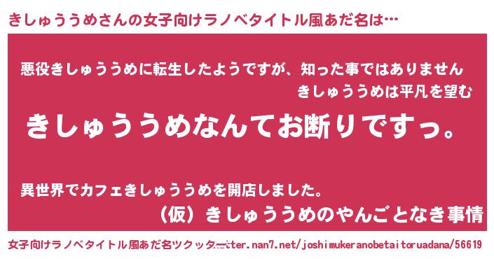 | 意味不明あだ名 | 『自称きしゅううめ』 |