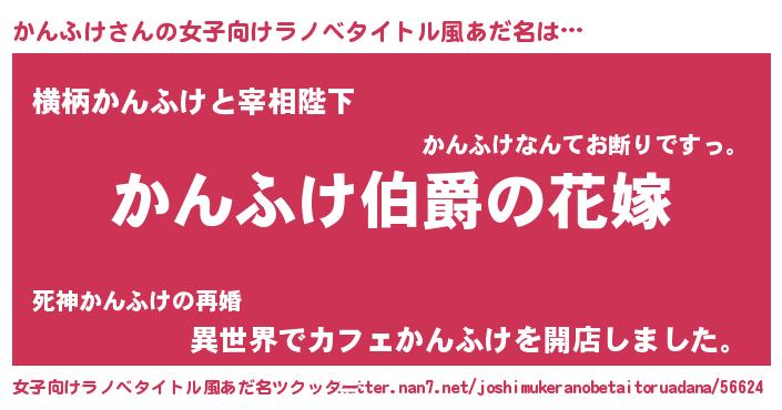 | 男性向けラノベタイトル風あだ名 | 『やはりかんふけの青春ラブコメはまちがっている 』 |