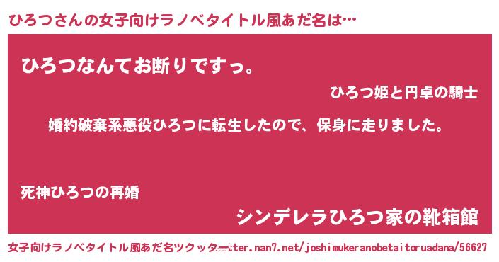 | 男性向けラノベタイトル風あだ名 | 『転生したらひろつだった件』 |