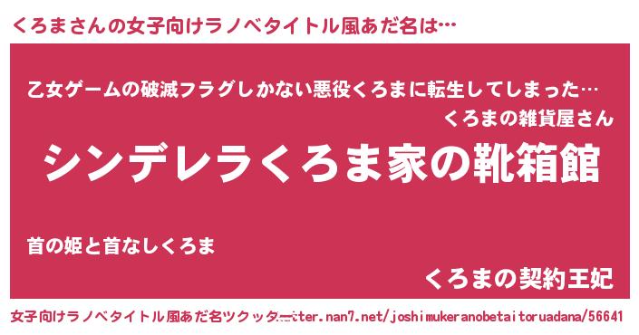 | 男性向けラノベタイトル風あだ名 | 『冴えないくろまの育てかた』 |