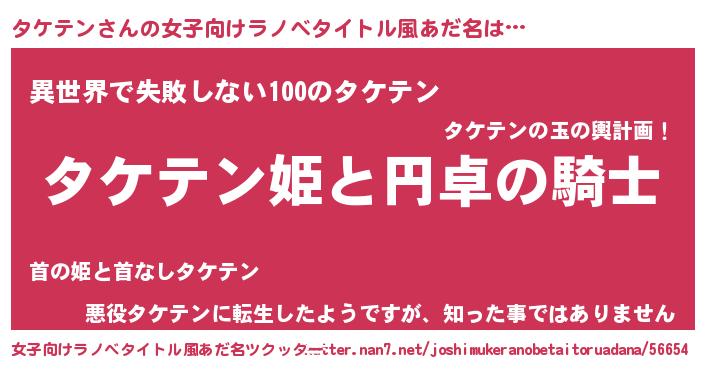 | 男性向けラノベタイトル風あだ名 | 『タケテンアートオンライン』 |