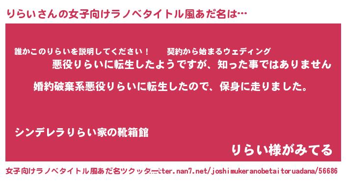 | 男性向けラノベタイトル風あだ名 | 『リライスレイヤー』『緋弾のリライ』 |