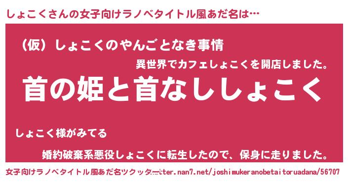 | 意味不明あだ名 | 『ペロリンしょこく』『永久保存しょこく』 |