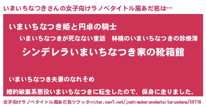 | 男性向けラノベタイトル風あだ名 | 『冴えないいまいちなつきの育てかた』 |