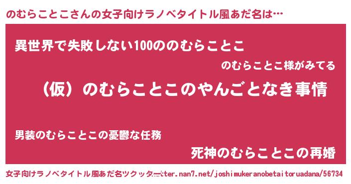 | 男性向けラノベタイトル風あだ名 | 『のむらことこの憂鬱』 |