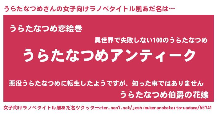 | 意味不明あだ名 | 『自称うらたなつめ』 |