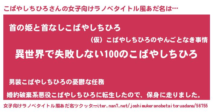 | 男性向けラノベタイトル風あだ名 | 『こばやしちひろという概念が存在しない退屈な世界 』 |