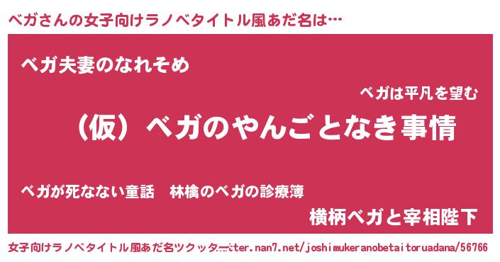 | 男性向けラノベタイトル風あだ名 | 『ベガの憂鬱』『魔弾の王とベガ』 |