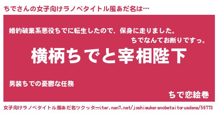 | 男性向けラノベタイトル風あだ名 | 『ちでに滅ぼされるだけの簡単なお仕事です』 |