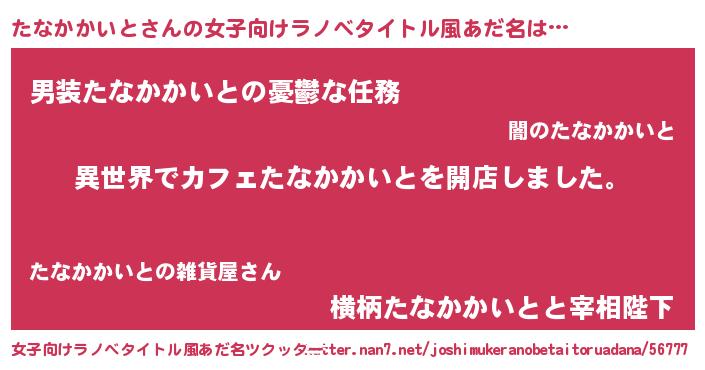 | 男性向けラノベタイトル風あだ名 | 『誰もが恐れるあのたなかかいとが、ぼくの専属メイドになるようです。』 |