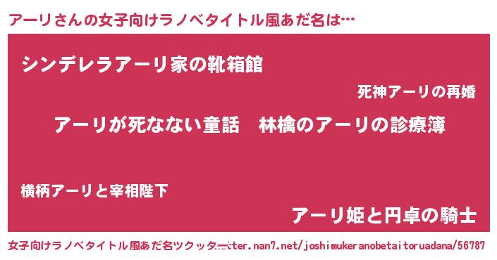 | 男性向けラノベタイトル風あだ名 | 『魔弾の王とアーリ』『緋弾のアーリ』 |