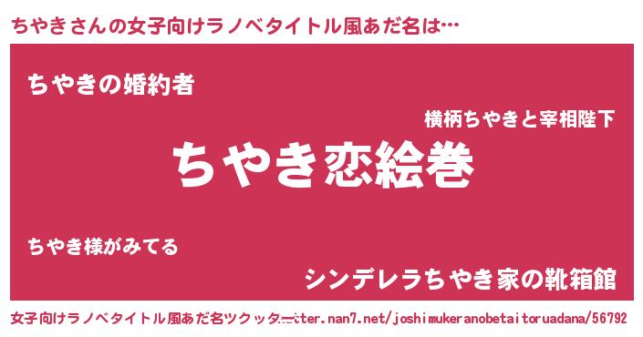 | ヒーロー風カッコイイあだ名 | 『愛の使者ちやき』『ウルトラちやきマン』 |