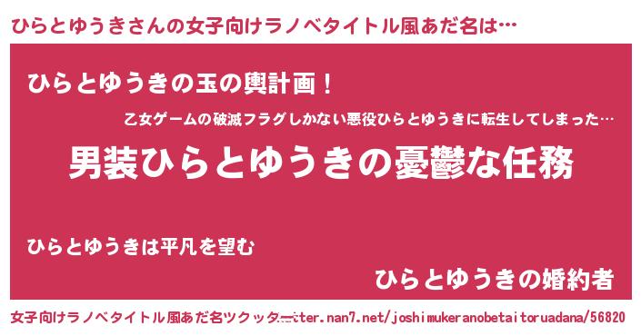 | 男性向けラノベタイトル風あだ名 | 『冴えないひらとゆうきの育てかた』 |