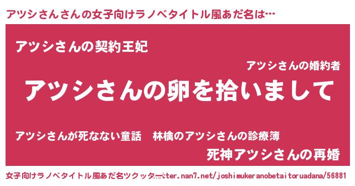| 胡散臭い通販商品みたいなあだ名 | 『伝統あるサプリメント…その名も「アツシさん」』 |