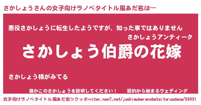 | 男性向けラノベタイトル風あだ名 | 『やはりさかしょうの青春ラブコメはまちがっている 』 |