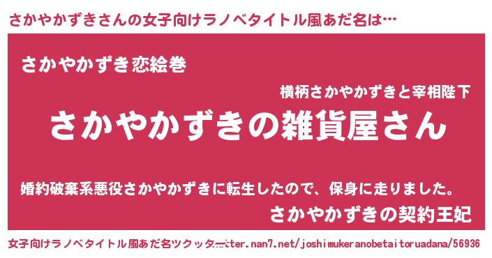 | 男性向けラノベタイトル風あだ名 | 『やはりさかやかずきの青春ラブコメはまちがっている 』 |
