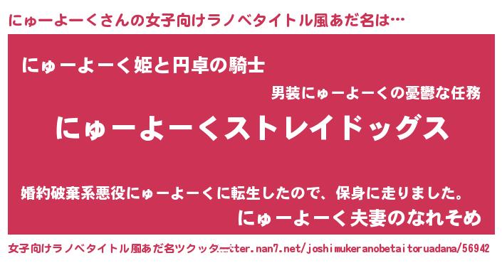 | 男性向けラノベタイトル風あだ名 | 『Re:にゅーよーくから始める異世界生活』 |