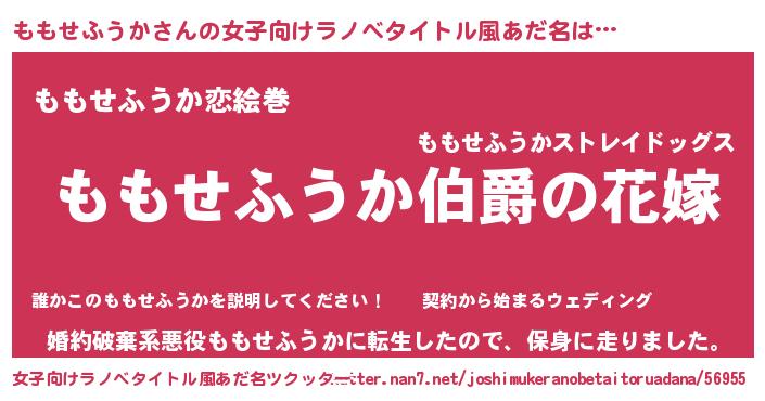 | 男性向けラノベタイトル風あだ名 | 『やはりももせふうかの青春ラブコメはまちがっている 』 |