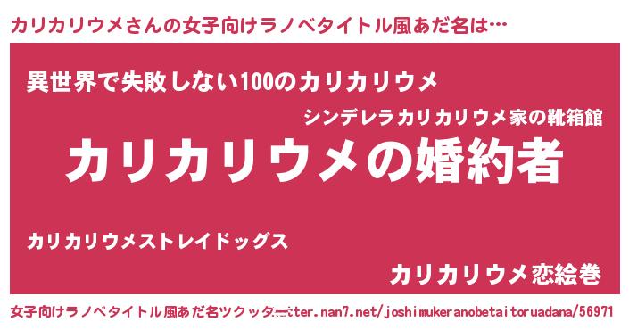 | ファンタジー風あだ名 | 『エターナルカリカリウメー』 |