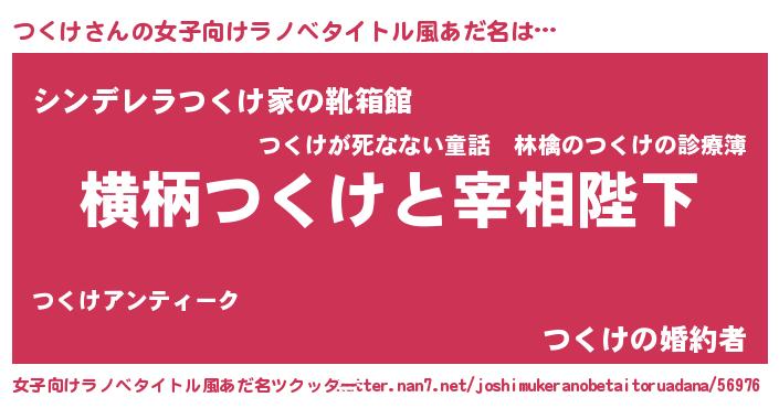 | 男性向けラノベタイトル風あだ名 | 『つくけに滅ぼされるだけの簡単なお仕事です』 |