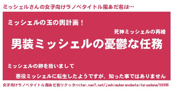 | ヒーロー風カッコイイあだ名 | 『仮面ミッダー』『慈愛の使者ミッシェル』 |