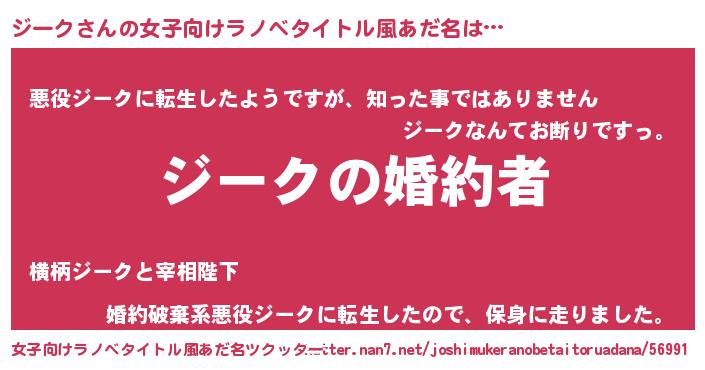 | 胡散臭い通販商品みたいなあだ名 | 『運命の人と巡り会える高級そうな絵画…その名も「ジーク」』 |