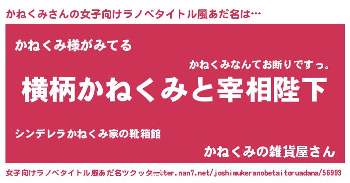 | 男性向けラノベタイトル風あだ名 | 『かねくみに滅ぼされるだけの簡単なお仕事です』 |