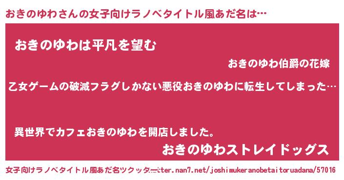 | 意味不明あだ名 | 『住所不定無職おきのゆわ(91歳)』 |