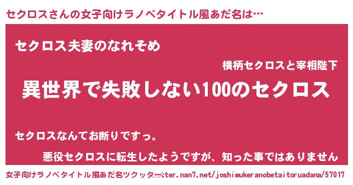 | ヒーロー風カッコイイあだ名 | 『ネオセクロス』『正義の使者セクロス』 |