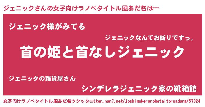 | 胡散臭い通販商品みたいなあだ名 | 『信頼と実績のサプリメント…その名も「ジェニック」』 |
