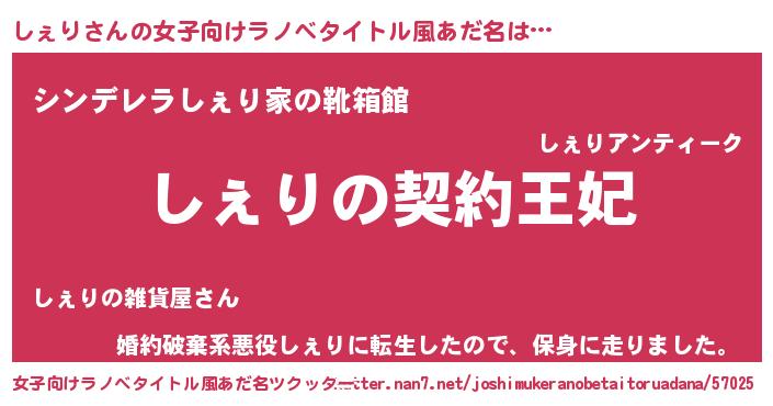 | 男性向けラノベタイトル風あだ名 | 『誰もが恐れるあのしぇりが、ぼくの専属メイドになるようです。』 |