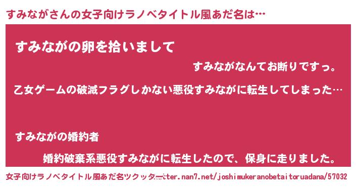 | 男性向けラノベタイトル風あだ名 | 『この素晴らしい世界にすみながを!』 |
