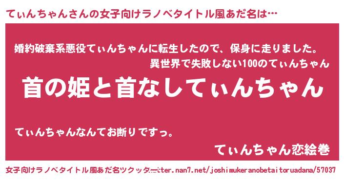 | 男性向けラノベタイトル風あだ名 | 『はたらくてぃんちゃんさま!』 |