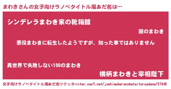 | 意味不明あだ名 | 『住所不定無職まわき(39歳)』『自称まわき』 |