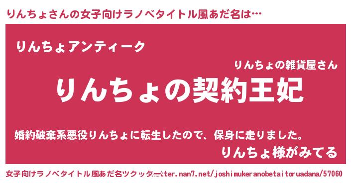| 胡散臭い通販商品みたいなあだ名 | 『来世でも幸せになれる健康食品…その名も「りんちょ」』 |