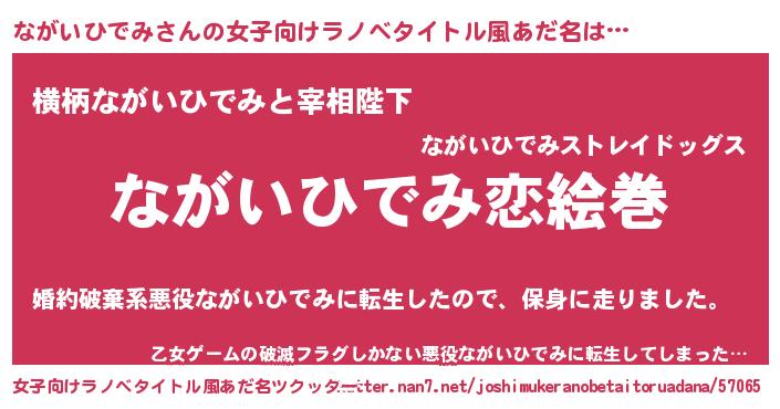 | 男性向けラノベタイトル風あだ名 | 『おまえをオタクにしてやるから、俺をながいひでみにしてくれ! 』 |