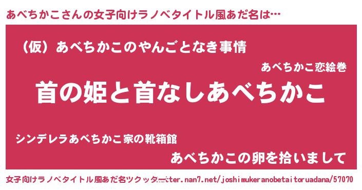| 胡散臭い通販商品みたいなあだ名 | 『必ず成功するブレスレット…その名も「あべちかこ」』 |