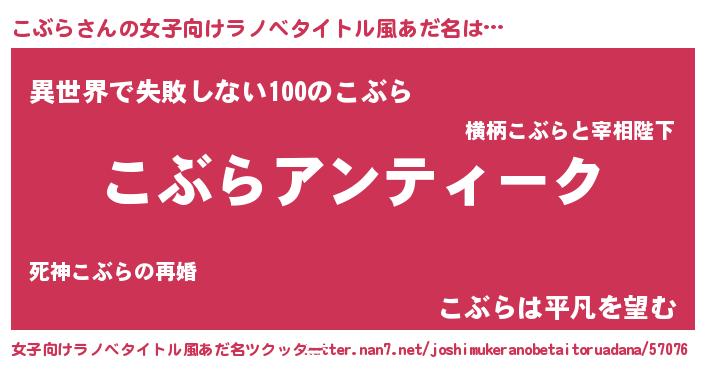 | 意味不明あだ名 | 『自称こぶら』『永久保存こぶら』 |