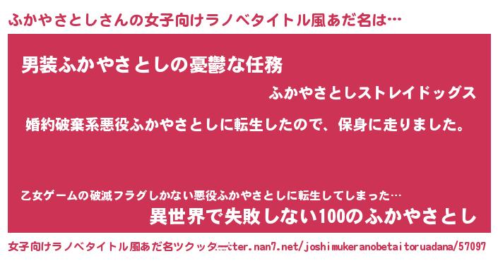 | ヒーロー風カッコイイあだ名 | 『ネオフカヤサトシ』『仮面フカダー』 |