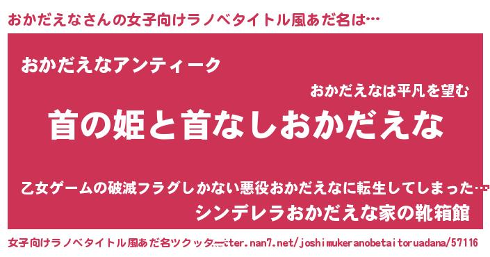| 胡散臭い通販商品みたいなあだ名 | 『ガンによく効く高麗人参…その名も「おかだえな」』 |