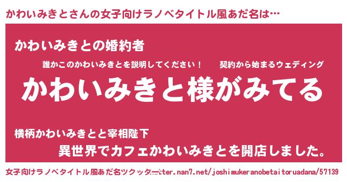 | 胡散臭い通販商品みたいなあだ名 | 『全米が絶賛したサプリメント…その名も「かわいみきと」』 |