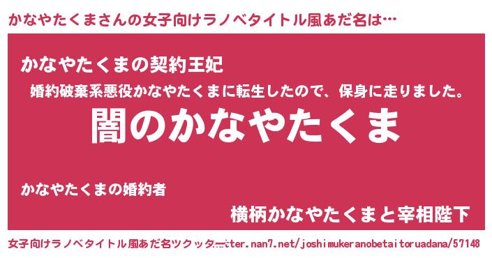 | 意味不明あだ名 | 『自称かなやたくま』 |
