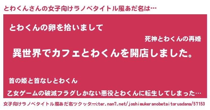 | 意味不明あだ名 | 『永久保存とわくん』『自称とわくん』 |
