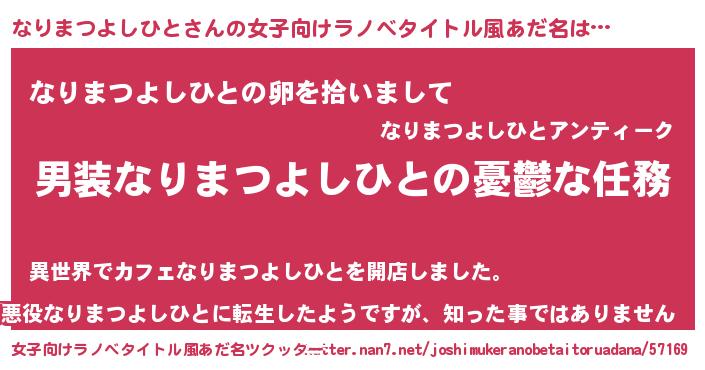 | 男性向けラノベタイトル風あだ名 | 『うちのなりまつよしひとが世界を掌握している!』 |