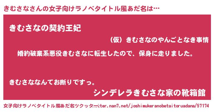 | 男性向けラノベタイトル風あだ名 | 『転生したらきむさなだった件』 |