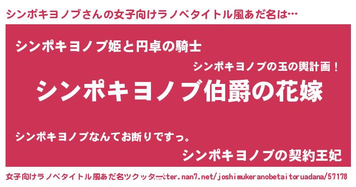 | 男性向けラノベタイトル風あだ名 | 『やはりシンポキヨノブの青春ラブコメはまちがっている 』 |
