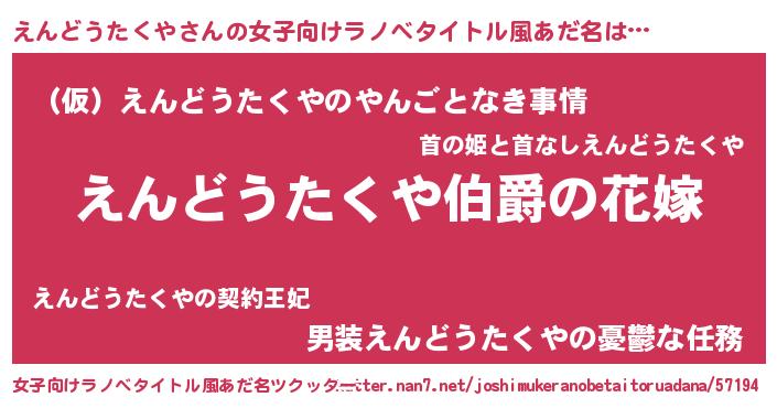 | 意味不明あだ名 | 『えんどうたくやフォーエバー』 |