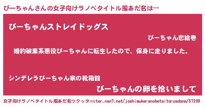 | 男性向けラノベタイトル風あだ名 | 『ビーチャンスレイヤー』 |