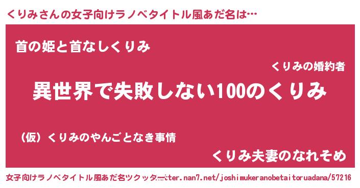 | 男性向けラノベタイトル風あだ名 | 『くりみという概念が存在しない退屈な世界 』 |