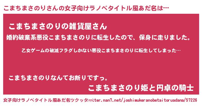 | 男性向けラノベタイトル風あだ名 | 『この素晴らしい世界にこまちまさのりを!』 |